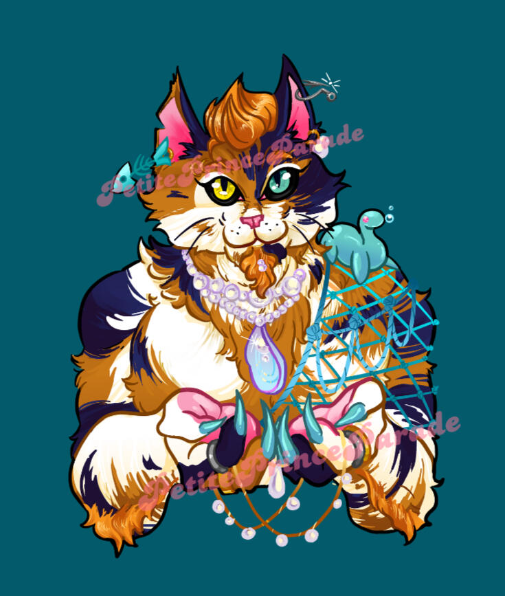 Bijoux showed up in his late teens with his family who took over the lakeside docks just out of town, and has always been a quirky and curious feline with a penchant for all things sparkly and beautiful. He and Rowdy used to delight in talking about the shinies the feline found along the beach and in the abandoned mines that sit an hour or so drive from town.Bijoux decorates the workers at Venom and Vice very well with his most unique and fitting pieces, and always turns up for their artisan markets with a large collection of gorgeous jewelry and trinkets to sell. He can also be a bit of a bar barnacle, talking off the ear of anyone who will listen about the spirits he claims to interact with in the abandoned places he scrounges for materials. If no one believes him, well then he just lets Bubbles climb on out and folks are quick to believe whatever he says when faced with a miniature loch ness beast!